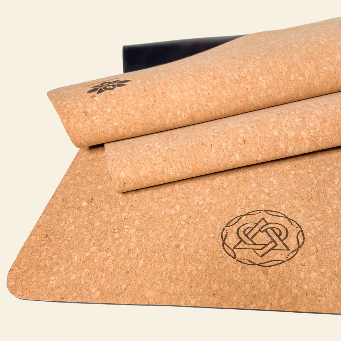 Ročno dokončane joga podloge iz plute in naravnega kavčuka, ustvarjene v Rišikešu in izbrane za vas na poti Dobre energije.