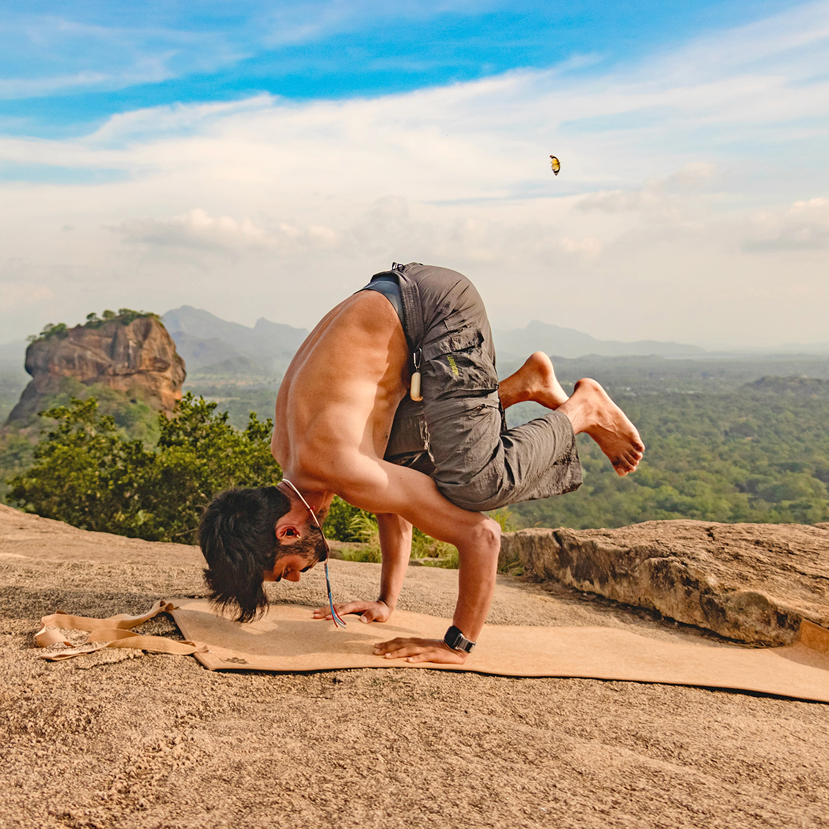 Ročno dokončane joga podloge iz plute in naravnega kavčuka, ustvarjene v Rišikešu in izbrane za vas na poti Dobre energije.